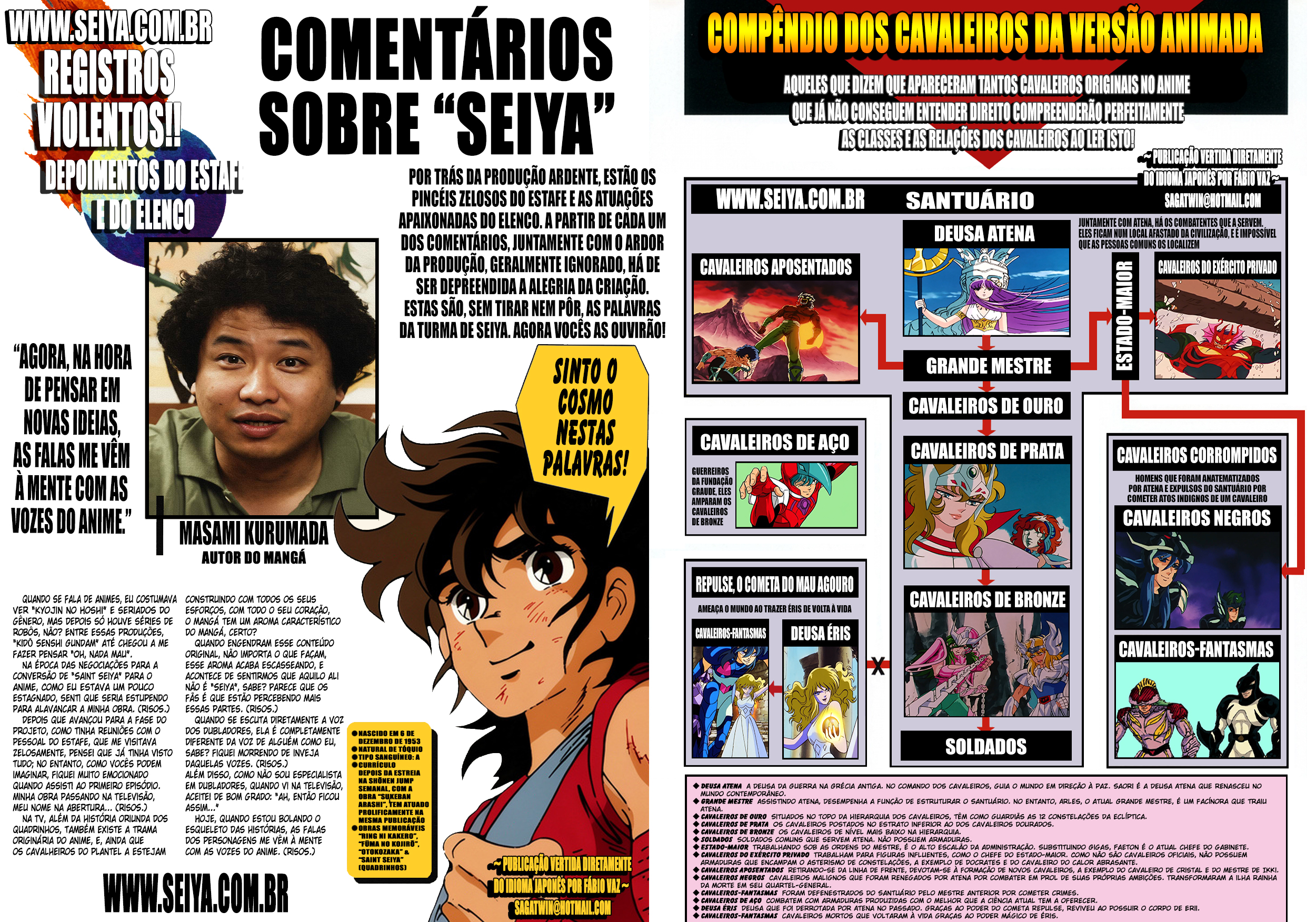 Na TV, além da história oriunda dos quadrinhos, também existe a trama originária do anime, e, ainda que os cavalheiros do plantel a estejam construindo com todos os seus esforços, com todo o seu coração, o mangá tem um aroma característico do mangá, certo? Quando engendram esse conteúdo original, não importa o que façam, esse aroma acaba escasseando, e acontece de sentirmos que aquilo ali não é Seiya, sabe? Parece que os fãs é que estão percebendo mais essas partes. (Risos.)